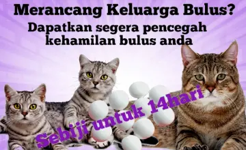 Difahamkan kucing itu telah pulih sepenuhnya. MegeCat - Pil Perancang Kucing. Kucing tidak sepatutnya diberi pil perancang yang dibuat khas untuk manusia kerana kesan sampingannya boleh menyebabkan haiwan itu maut.